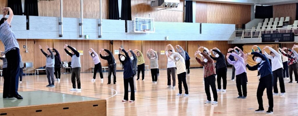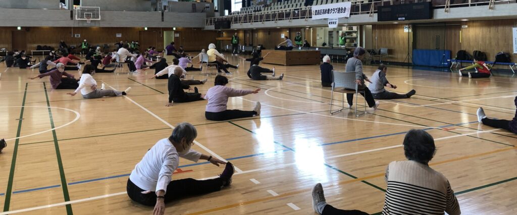 3月9日・午後、広い豊島体育館で今年度最後の「健康教室」を開きました。 教室はいつものように、木津美佳先生の明るく爽やかなご指導で、和やかに…でもシッカリと全身の柔軟体操をさせていただきました! 日頃身体を動かさない方々にはいささかハードな時もあり、結構ついていくのは大変です!? 音楽に合わせてのリズム体操からフォークダンスまで、いつもながら快い健康体操教室でした。