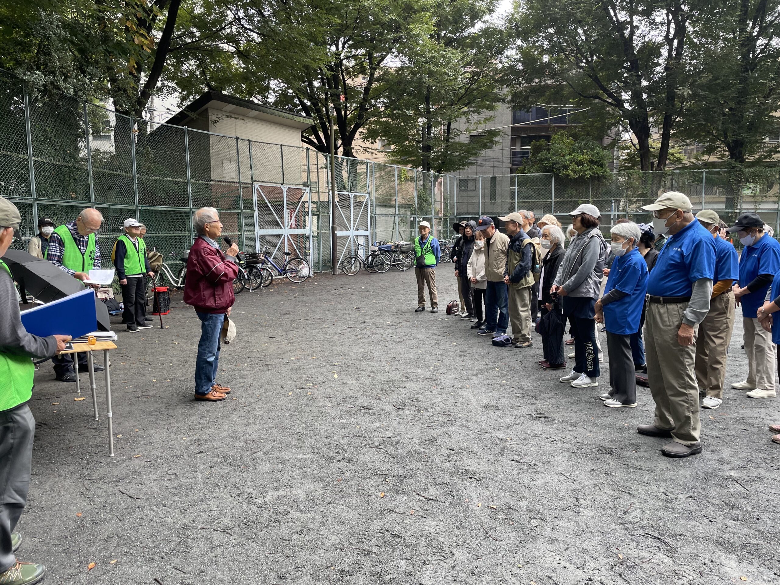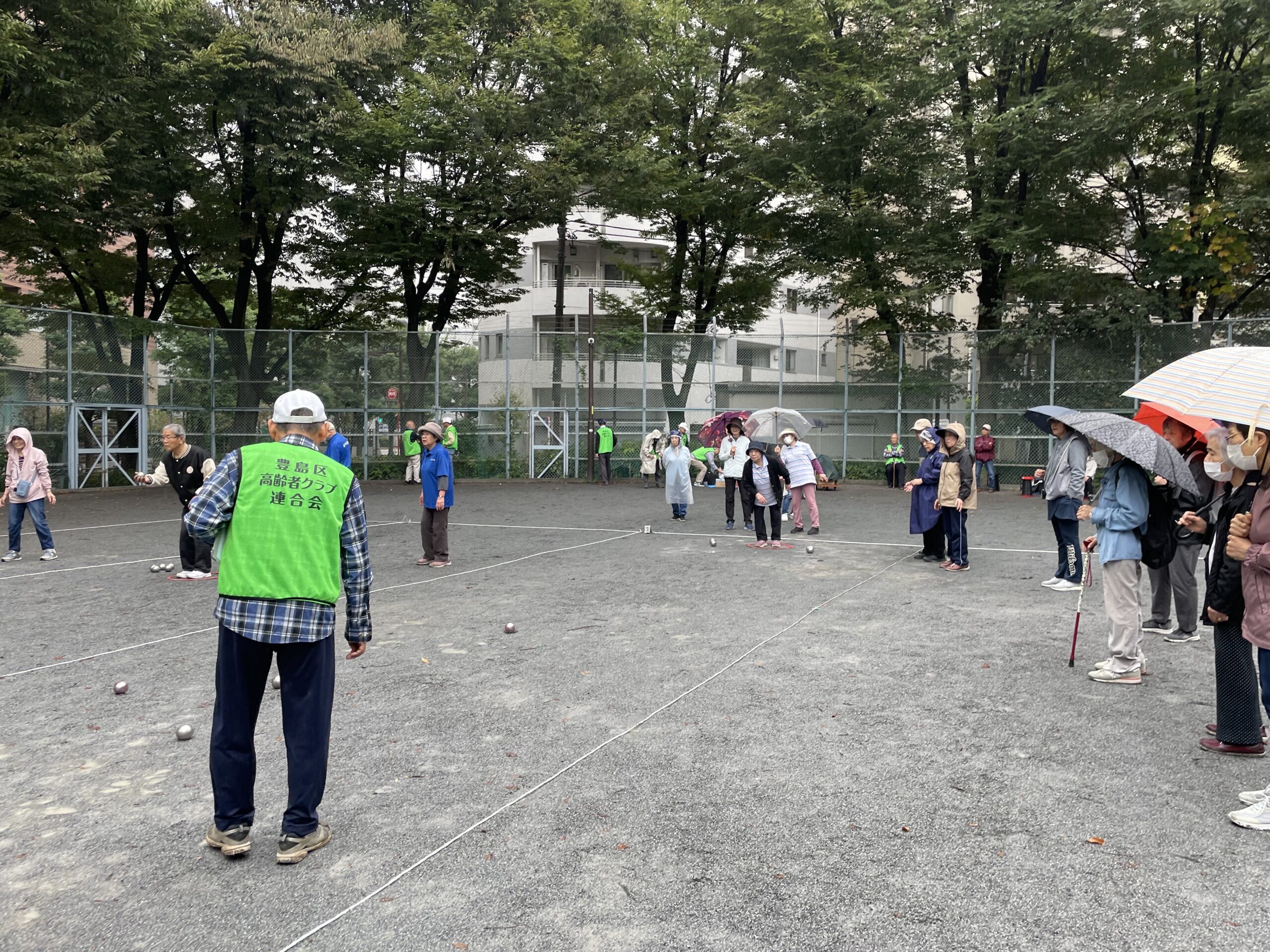 10月16日(木)「第39回ペタンク大会」を西池袋公園で開催しました。今回は10チームが早朝から集合、常任理事の手際よいコート設営を待って競技を繰り広げました。